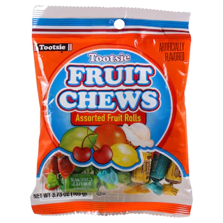 Assortment Details: 3.75-oz. Bags Tootsie® Fruit Chews® Assorted Fruit Rolls