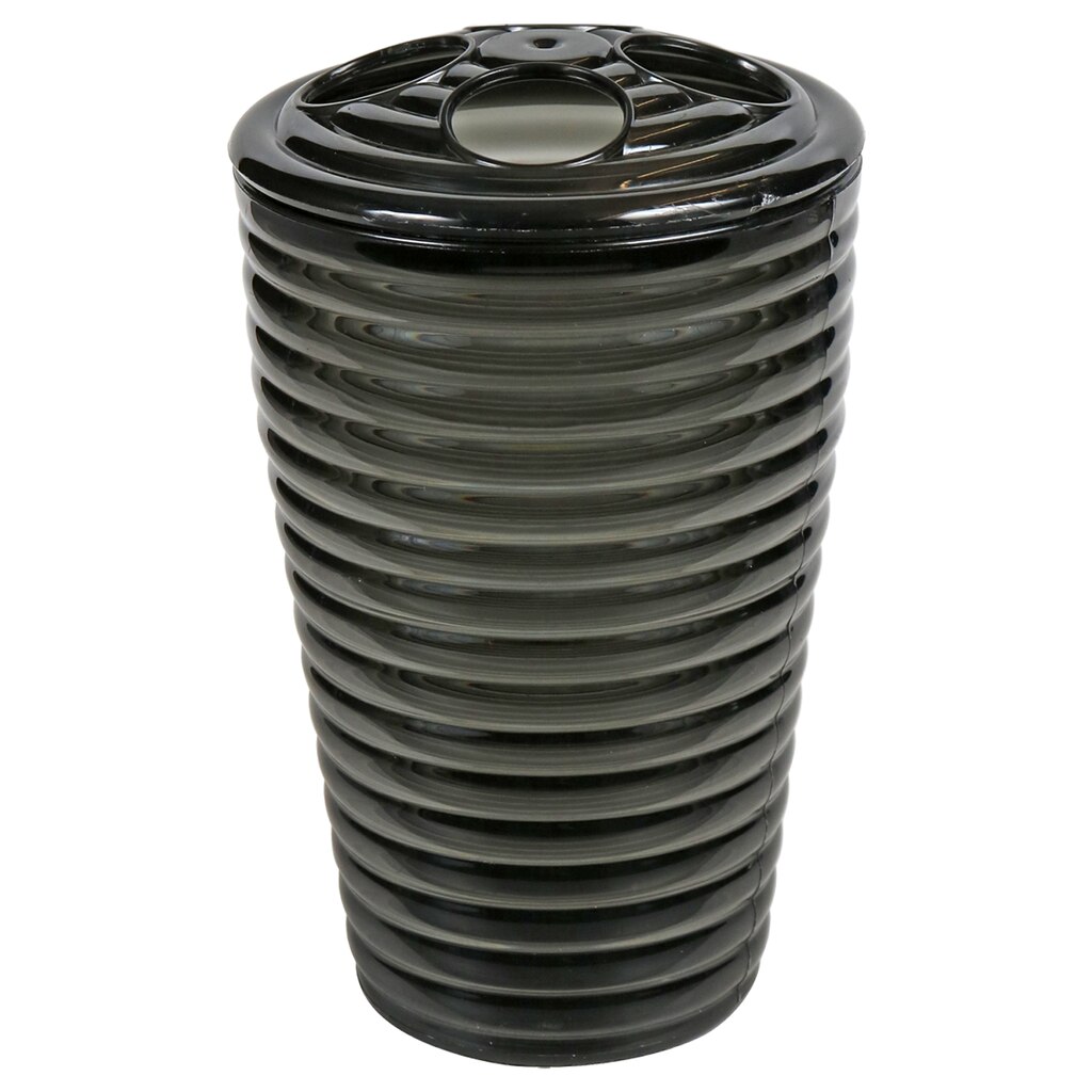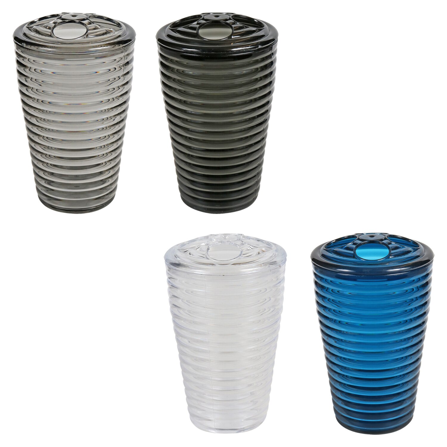 Assortment Details: 5.125×3.125-in. Translucent Plastic Toothbrush Holders unevenly assorted among clear, blue, gray, and black