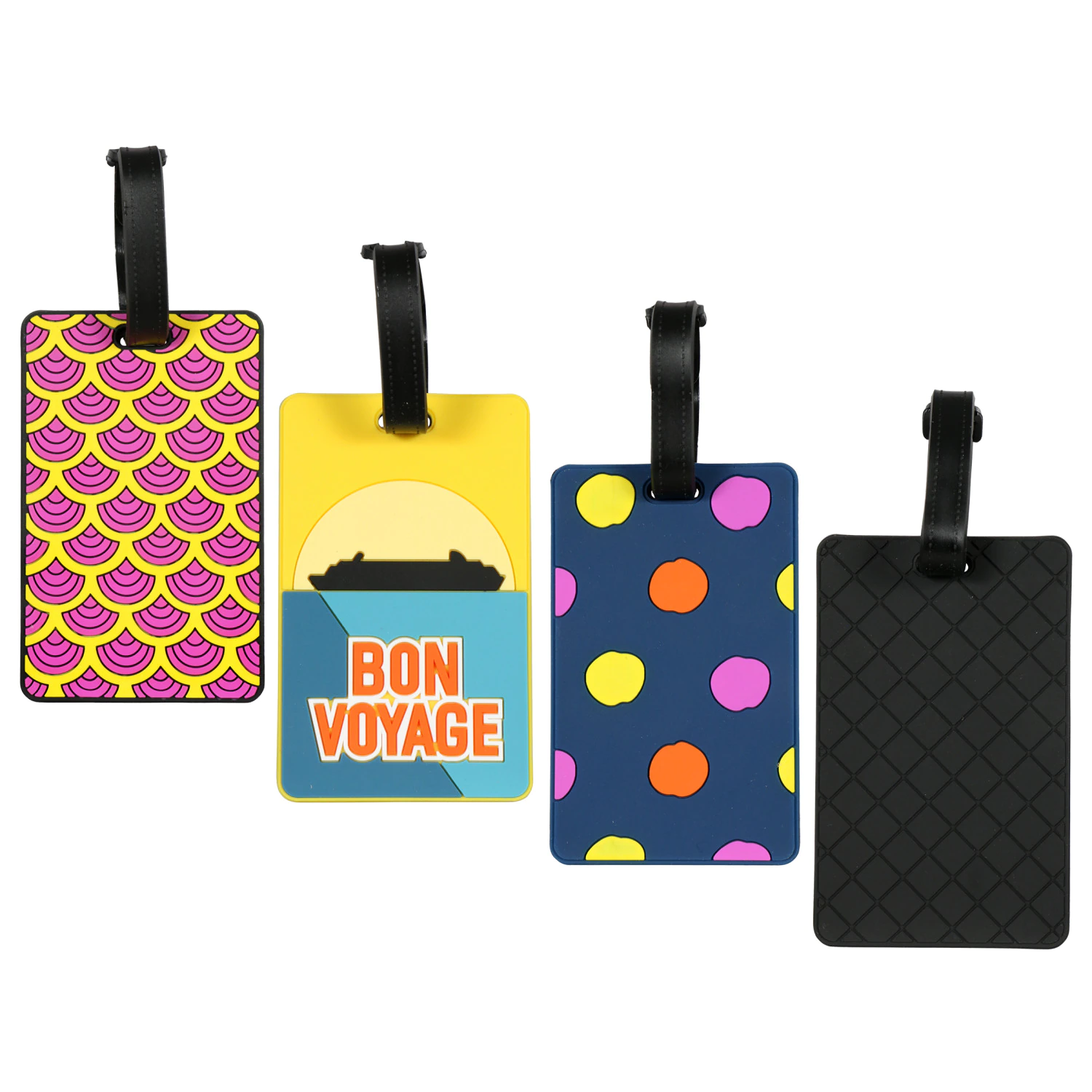 Assortment Details: 4×2.5-in. Travel Luggage Tags assorted among the 4 designs shown