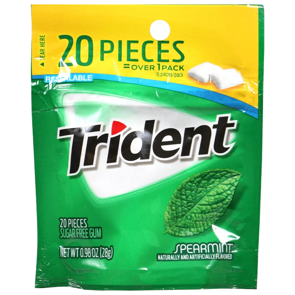 Cleans and protects teeth! Trident gum is sugar free and has a refreshing spearmint flavor to freshen breath. Great for keeping in purses, backpacks, desks, and more. Put them in goodie bags and care packages.