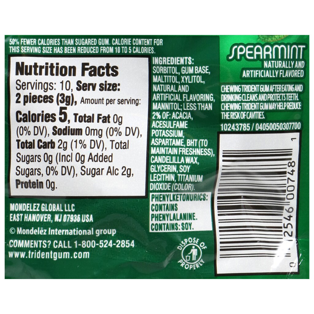Assortment Details: 20-pc. Packs Trident® Spearmint Sugar-Free Gum
