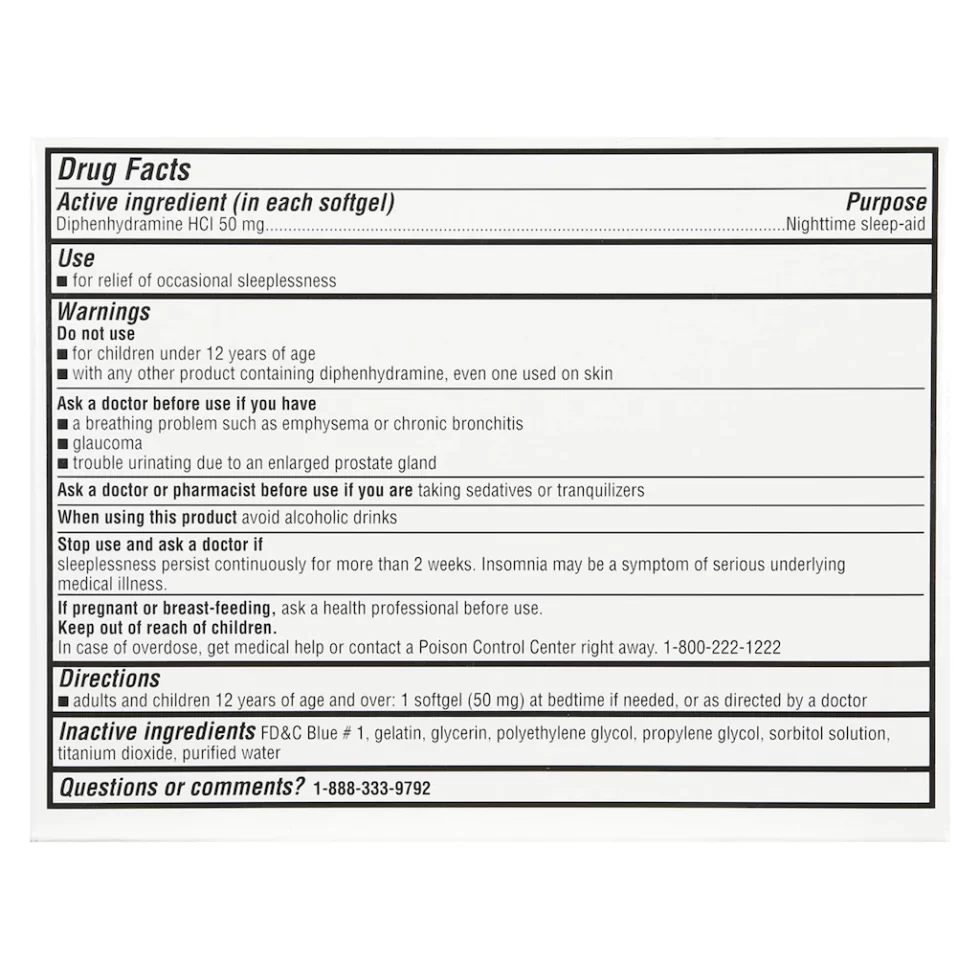 If you’re having trouble sleeping, ValuHealth Maximum Strength 50-mg. Diphenhydramine HCI Nighttime Sleep-Aid Softgels might be a good solution. These non-habit forming softgels contains 50-mg. Diphenhydramine HCI to help reduce difficulty falling asleep. Each 3.25×4.25-in. box contains eight blue softgels simply take one at bedtime if needed. Ideal for storing in your bedside table for relief of occasional sleeplessness.
