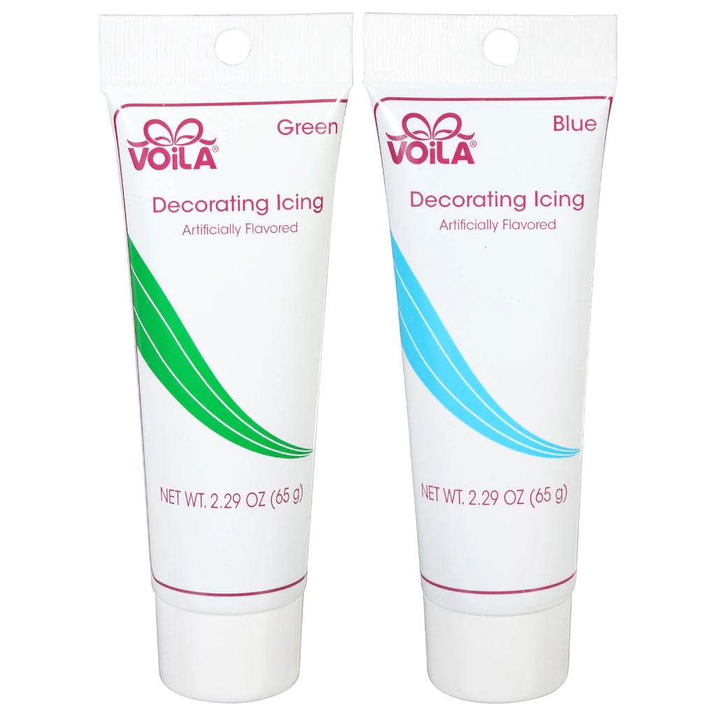 Assortment Details: 2.29-oz. Tubes of Viola® Solid-Color Icings assorted among pink, purple, green, blue, red, and yellow.