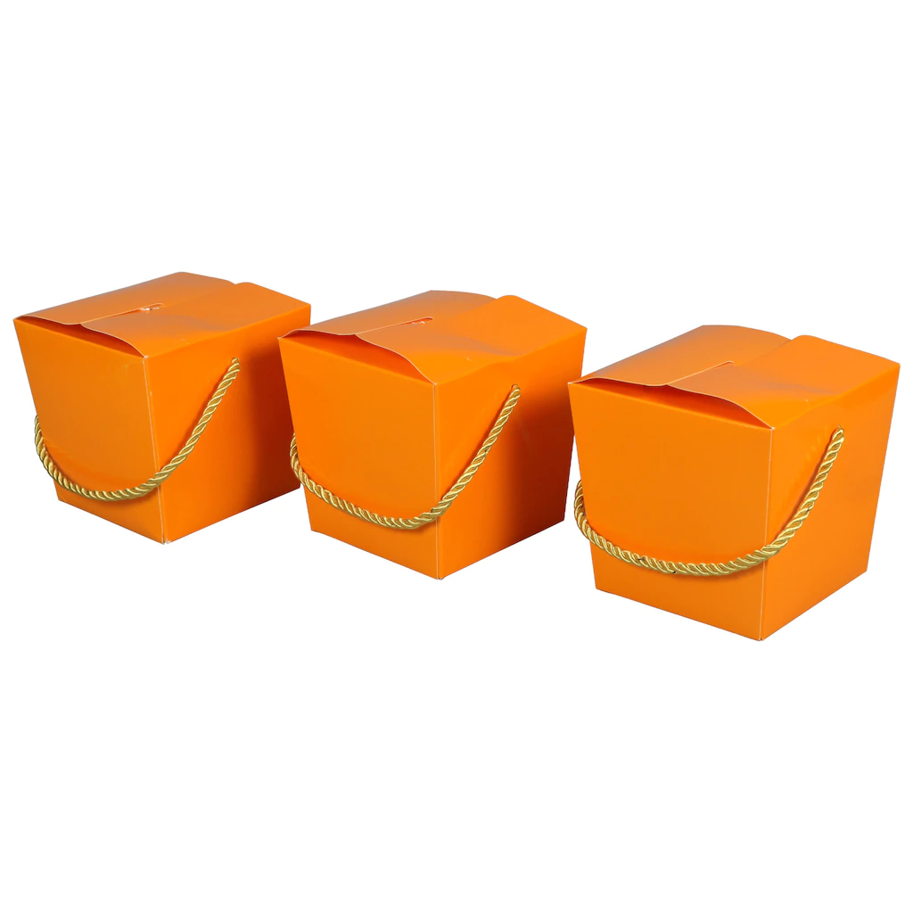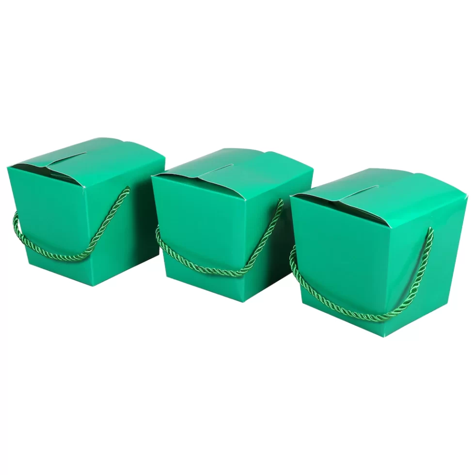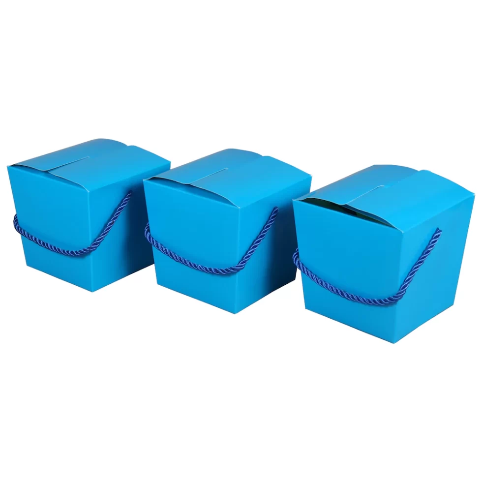 Put a creative spin on delivering treats! Brightly colored takeout boxes are great for taking baked treats to friends and family, or packing up leftovers. They also make adorable favor boxes at weddings, parties, and showers. Each takeout box measures 4½x3¾x4¼” and has an attached string handle.