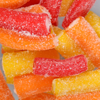 Warheads Tropical Ooze Chews feature six sour chewy candies with a fruit-flavored liquid center that oozes into your mouth with each bite. They are very colorful and the combination of flavors, textures, and oozing make this one of the more fun and unique contemporary candies.