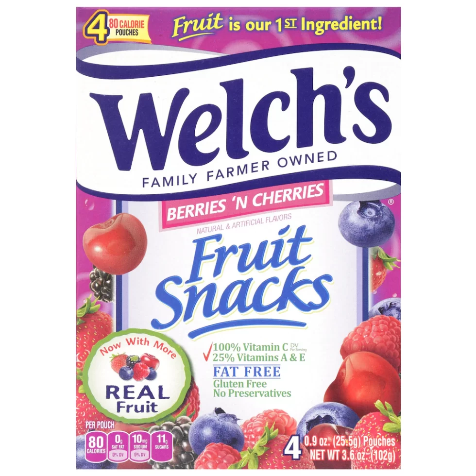 Assortment Details: 4-ct. Boxes of Welch’s® Berries and Cherries Fruit Snacks