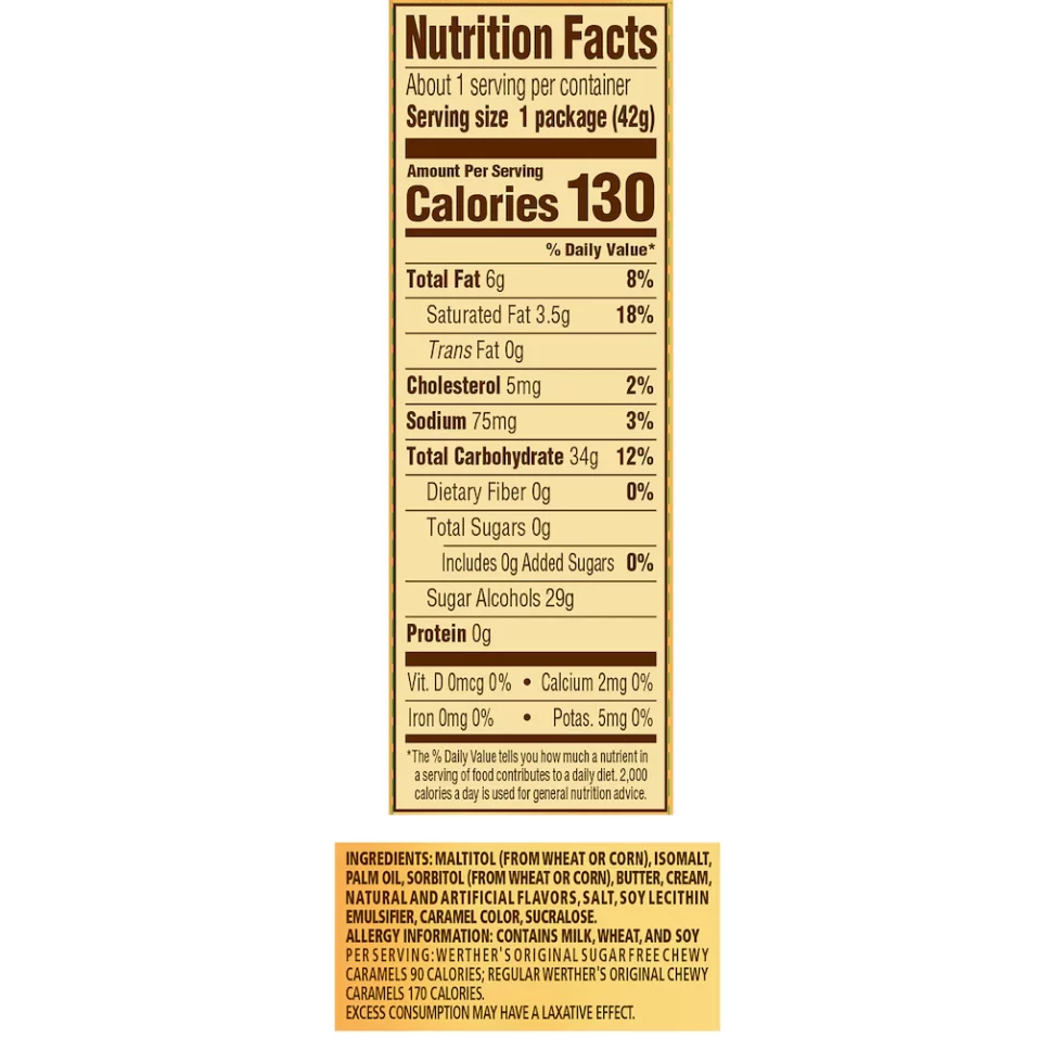 Assortment Details: 1.46-oz. bags of Werther’s® Original® Sugar-Free Caramel Coffee Hard Candies