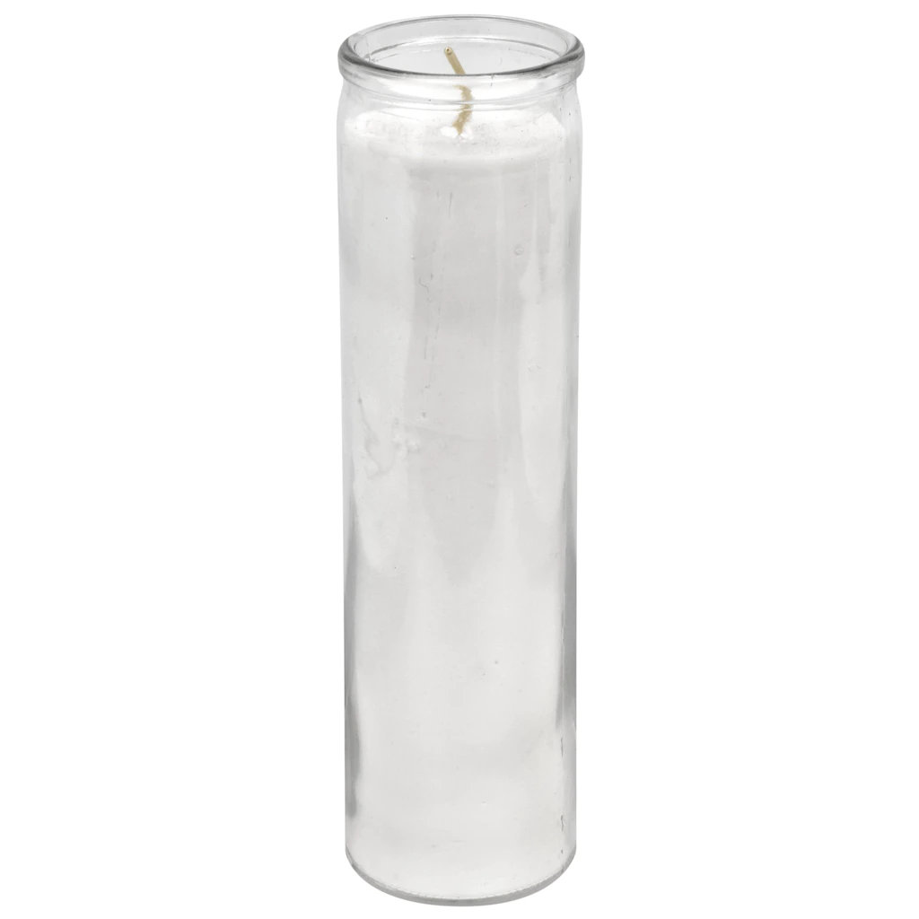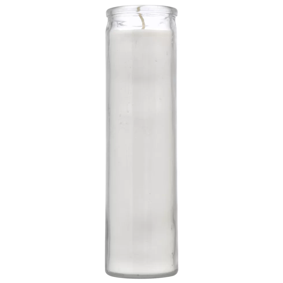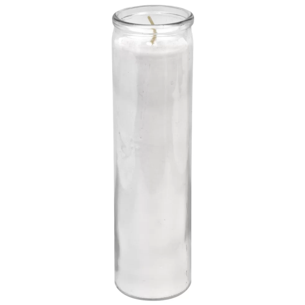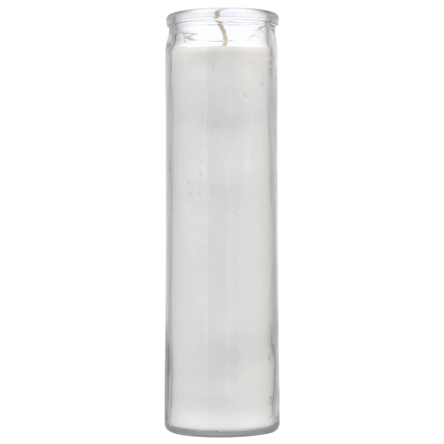Tall glass jar candles are ideal for sanctuary candles, candlelight vigils, and other spiritual practices. Unscented white wax is enclosed in a tall glass jar and designed to burn continuously over long periods of time, up to 80 hours depending upon burning conditions.