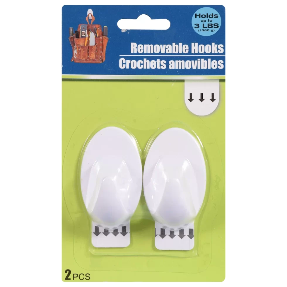 Assortment Details: 2-ct. Packs of White Plastic Removable Wall Hooks