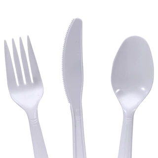Assortment Details: 48-ct. Bags White Plastic Utensils with 16 each of forks, knives and spoons.