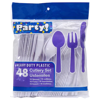 Combo packs of white utensils are a perfect match to our white party supplies and are a great complement to our other selection of party patterns and solids! Each 48-piece bag contains 16 forks, 16 knives, and 16 spoons. Packaging may vary.