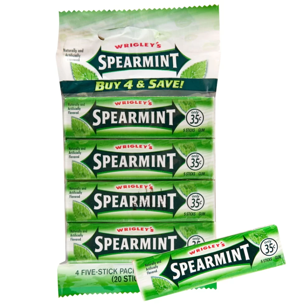 Assortment Details: 4-ct. Packs Wrigley’s™ Spearmint Gum each pack has 5 sticks of gum