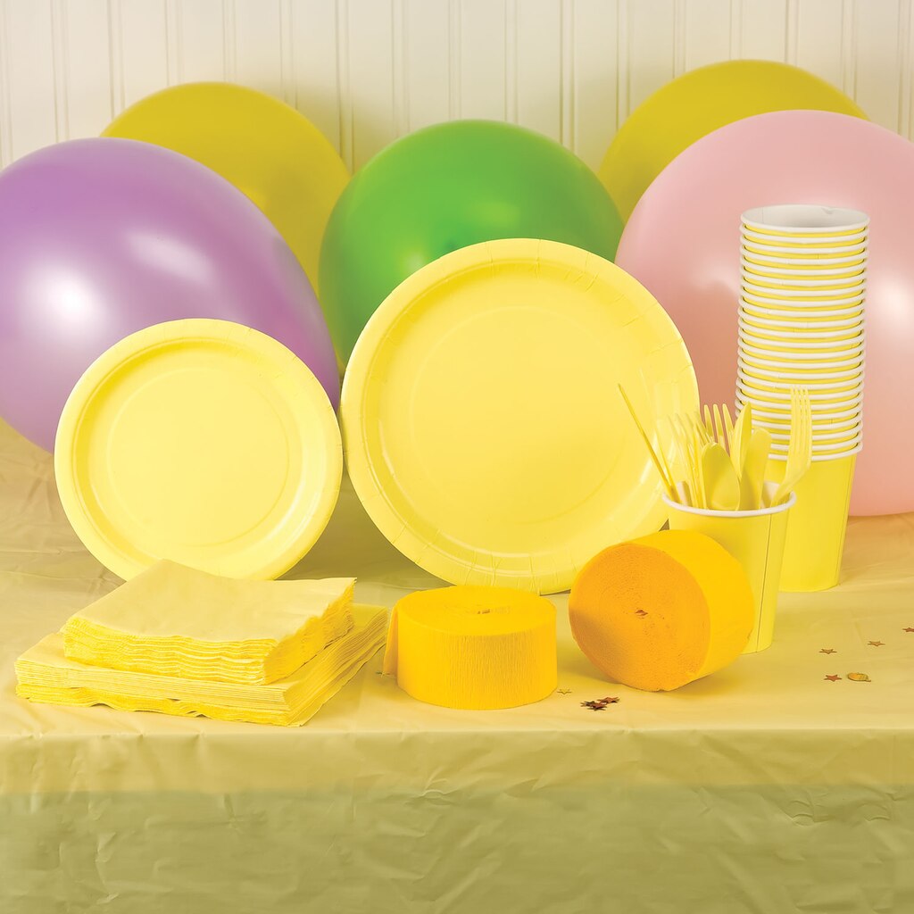 2-ply 5×5-in. beverage napkins in sunny lemon yellow are a pretty addition to any celebration and the perfect companion to drinks and desserts! Great for baby and bridal showers, and summertime garden parties. Pair with lemon-yellow plates and cups for a coordinated, sunny theme, or mix and match with our other party tableware.